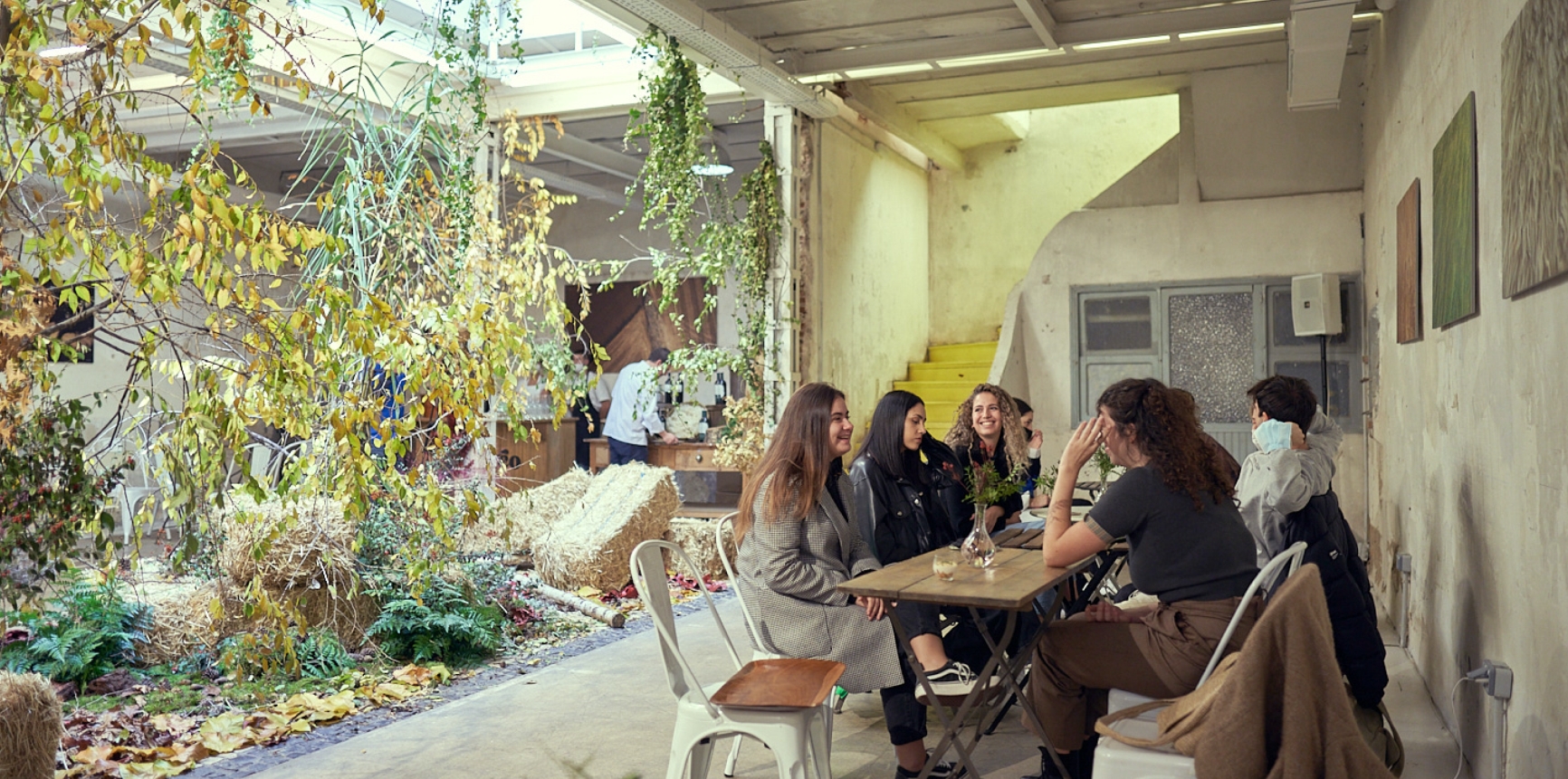 El pop up tuvo lugar el último fin de semana de noviembre en la capital, concretamente en la calle Sandoval número 3. El espacio contaba con todos los detalles para hacerlo un lugar especial y que te trasladaba al campo. El inmobiliario, los bloques de paja, las plantas, el sonido ambiental de los pajaritos volando, las fotografías...Todo ello ayudó a conseguir un ambiente campestre y familiar.